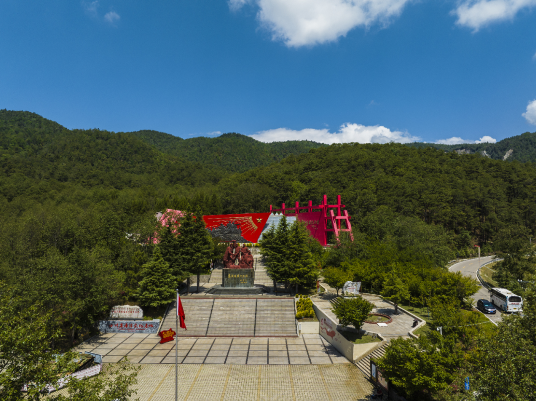 圖為彝海結(jié)盟景區(qū)航拍,后方紅色建筑為彝海結(jié)盟紀(jì)念館。冕寧縣委宣傳部供圖
