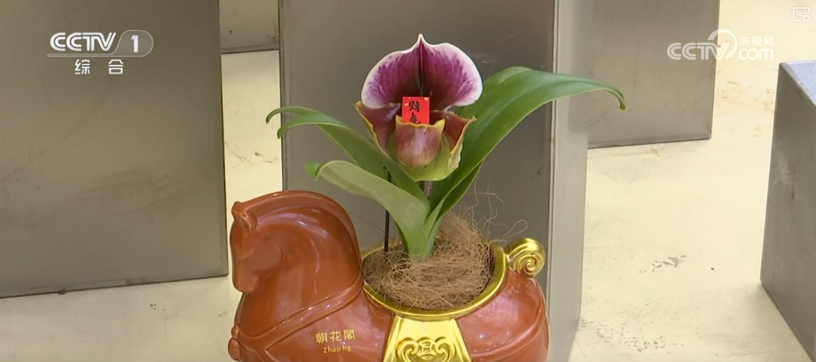 在北京花卉交易中心,各色年宵花爭奇斗艷。其中,新品蘭花“兜蘭”十分惹眼,獨特的兜形花瓣里,被放入“順?biāo)臁薄敖】怠钡淖8?ㄆ?,寓意“兜住順?biāo)臁薄岸底〗】怠?,祝福滿滿,年味十足。