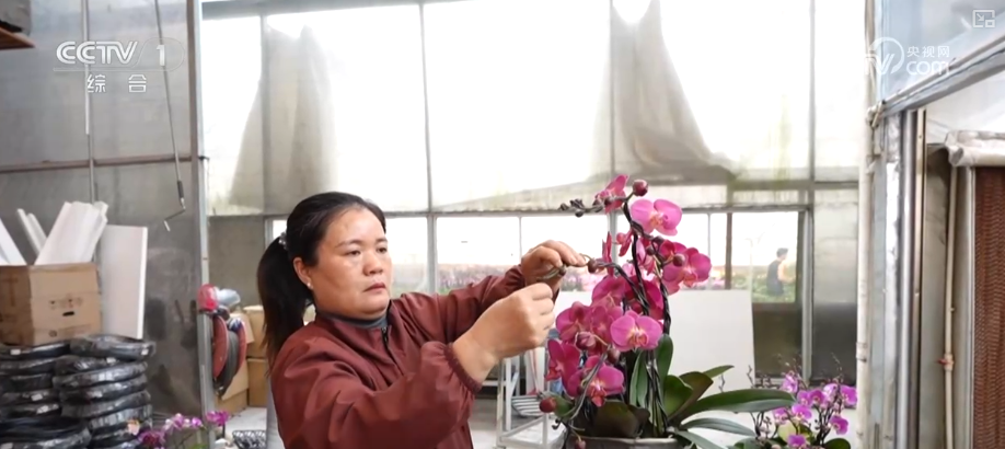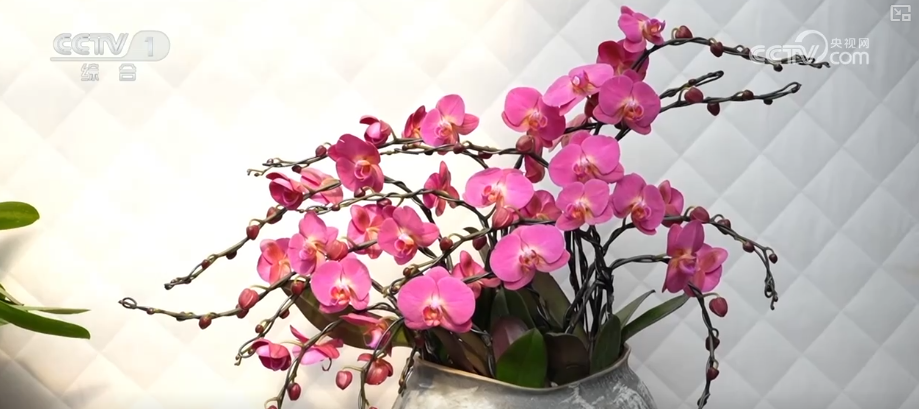 這是花藝師從眾多蝴蝶蘭中,挑選出枝干挺韌的株型作為“骨架”,再用手工慢慢牽引、固定而成。除了蝴蝶蘭組合的奔馬造型,花枝飄逸的祥云造型,花開成樹的羅漢松造型,都深受市場歡迎。