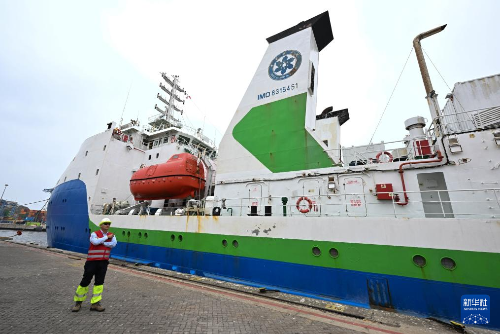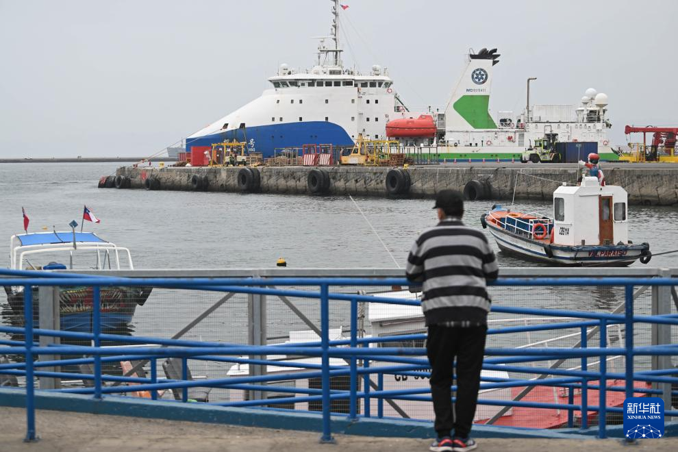 這是1月19日拍攝的??坑谥抢胁客郀柵寥R索港的中國“探索一號”科考船。新華社發(fā)(豪爾赫·比列加斯攝)