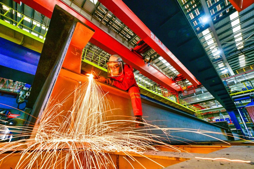1月19日,在天津市濱海新區(qū),海上油氣平臺建設工人進行氣割作業(yè)。新華社發(fā)(杜鵬輝攝)