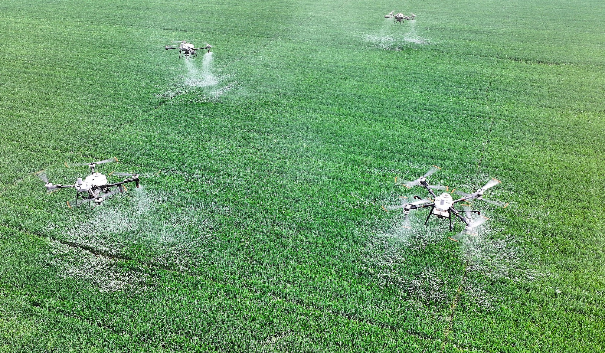 2025年4月9日,安徽省亳州市利辛縣永興鎮(zhèn)諸王社區(qū),種糧大戶利用植保無人機給小麥噴灑藥物。