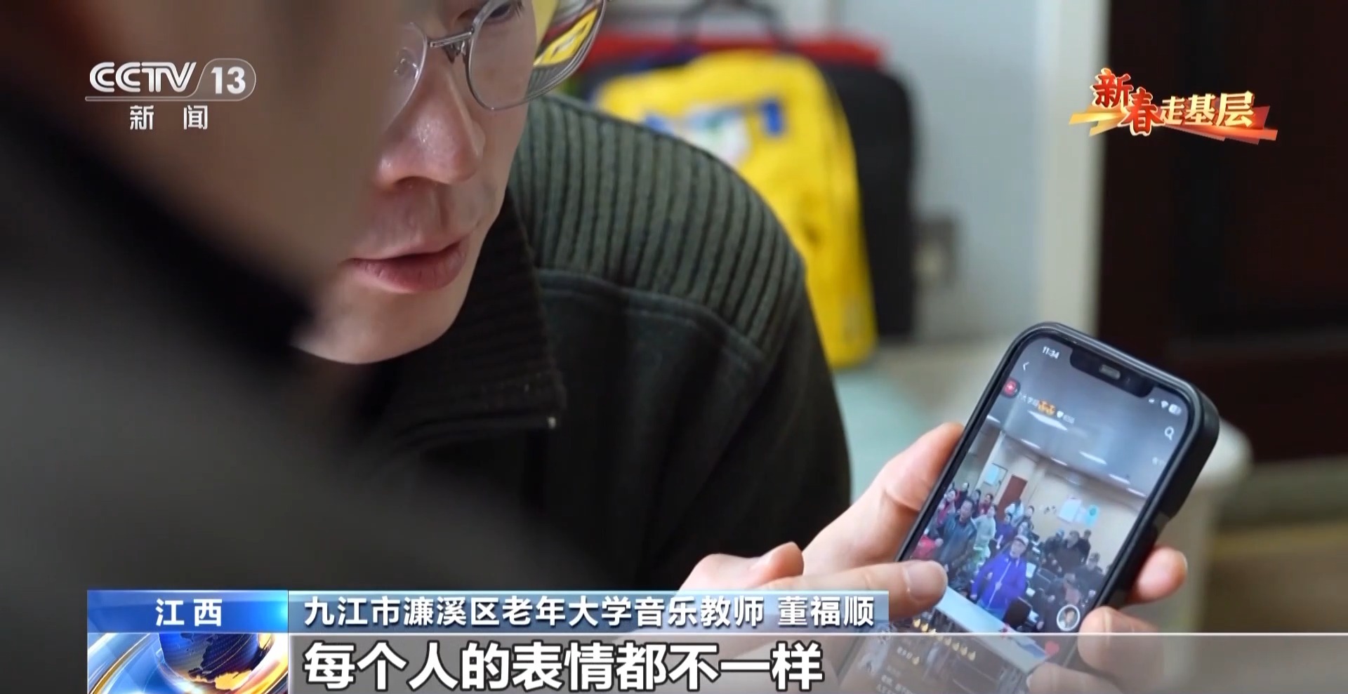 九江市濂溪區(qū)老年大學(xué)音樂教師 董福順:我去了之后,他們說我四十年沒有開口唱過歌,已經(jīng)很久很久,他們說都快忘了這首歌的歌詞了,你過來了,讓我想起了它。所以我覺得我又一次被認(rèn)可了,我也覺得是他們在給我一點能量,當(dāng)看著他們唱回憶起的這些歌曲的時候,他們坐直了,開始朝我揮手去唱,我覺得這件事做對了。