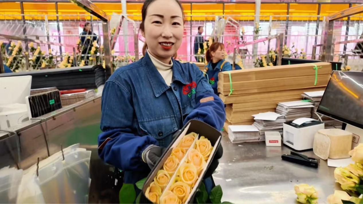 經(jīng)她們之手,高原玫瑰通過(guò)冷鏈物流,走向全國(guó)各地乃至海外。這讓張婷婷格外自豪:“我包的花有一天竟然能到國(guó)外。他們捧著它的時(shí)候,會(huì)是什么心情?會(huì)不會(huì)很開(kāi)心?”