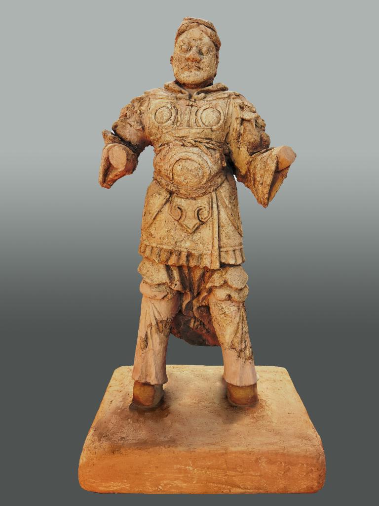 這是庫(kù)車市友誼路墓群發(fā)掘出土的武士泥俑。(新疆文物考古研究所供圖)