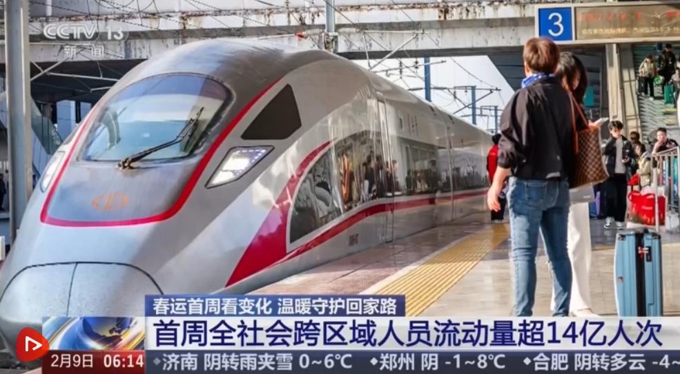 2026年春運2月2日拉開帷幕,到2月9日是第八天。據(jù)此前綜合研判的數(shù)據(jù),在今年春運40天的時間里,全社會跨區(qū)域人員流動量將會達到95億人次,預計創(chuàng)歷史新高。數(shù)據(jù)顯示,春運首周,預計全社會跨區(qū)域人員流動量累計超14億人次,日均超2億人次,比去年同期增長2%。交通運輸部預計,2月14日前后將達到春節(jié)前客流峰值。