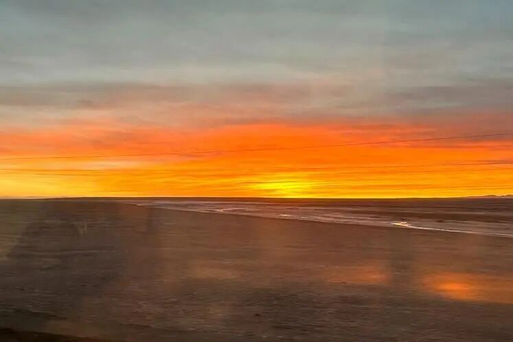 透過(guò)車窗,我看到的是雪山連接著白云,草地包裹著河灘,大地養(yǎng)育著生命,晚霞撫慰著山河。