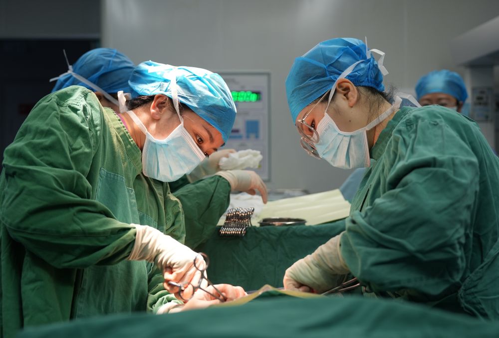 ↑ 2月16日,在廣西柳州市融水苗族自治縣人民醫(yī)院,醫(yī)護(hù)人員為患者做手術(shù)。新華社發(fā)(龍濤攝)