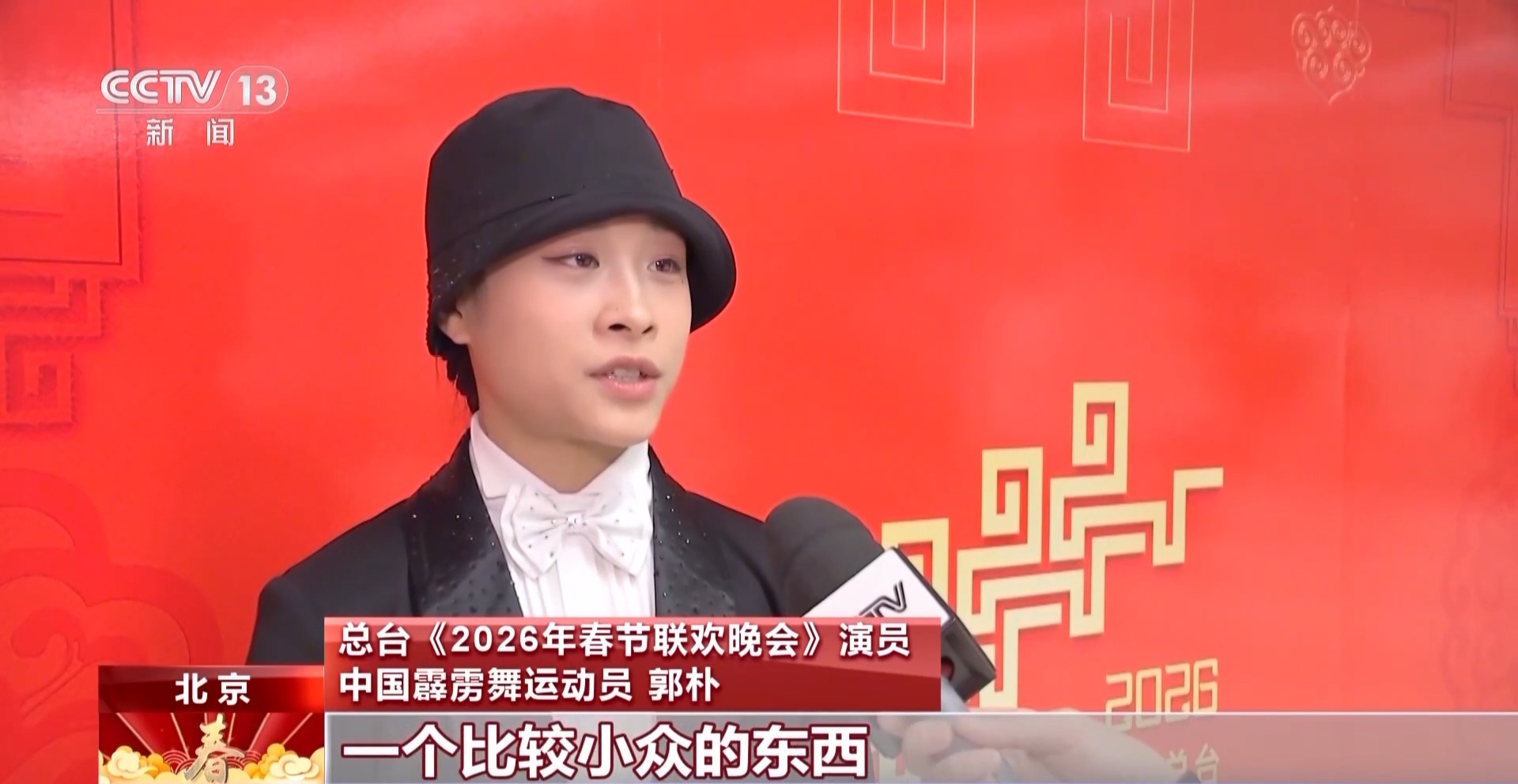總臺《2026年春節(jié)聯(lián)歡晚會》演員 中國霹靂舞運(yùn)動員 郭樸:這次在節(jié)目當(dāng)中做得最多的就是霹靂舞里面的一些技巧難度動作,這是我第一次參加央視春晚,在春晚當(dāng)天讓大家看到霹靂舞,很開心,因為霹靂舞算是一個比較小眾的東西,它可以帶到全國人民的眼前,這個機(jī)會很難得。