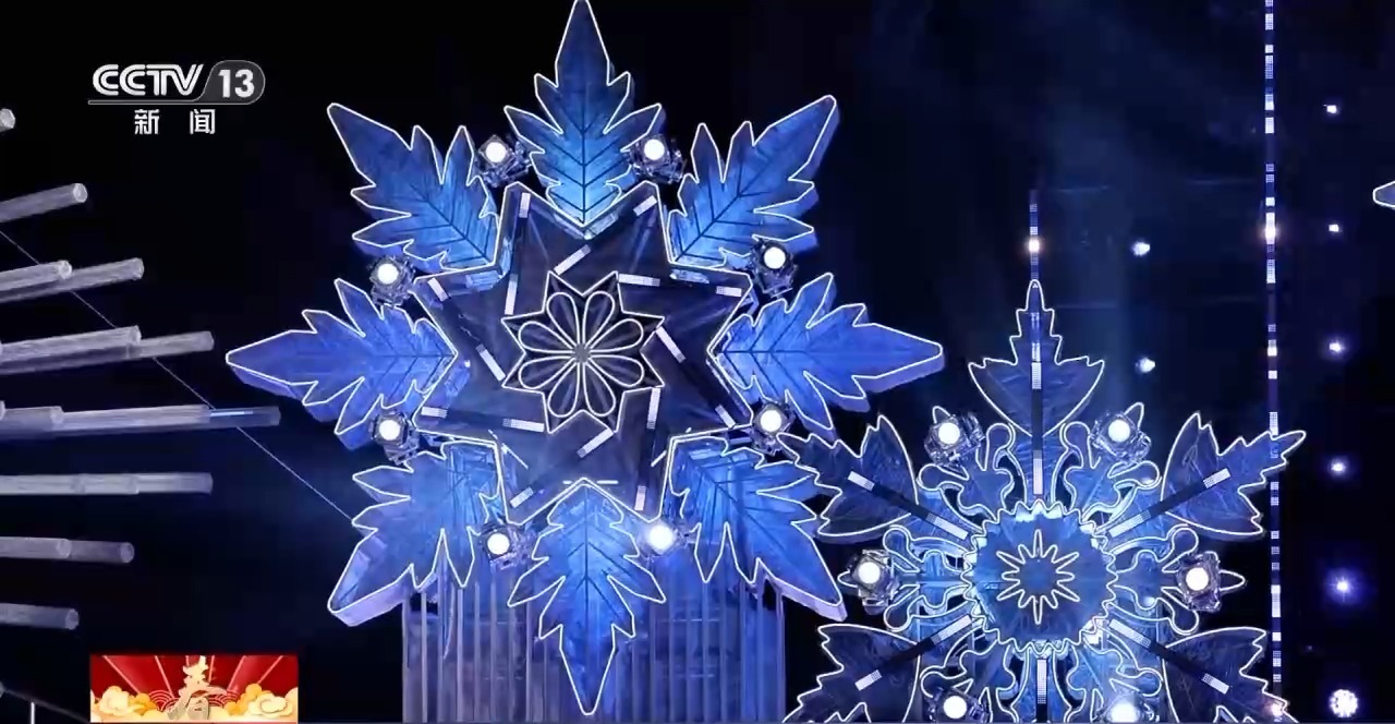 總臺《2026年春節(jié)聯(lián)歡晚會》哈爾濱分會場制片主任 曹天抒:有十朵雪花,每個(gè)雪花都是用特殊的一種鋼網(wǎng)的材質(zhì),做出來晶瑩剔透的效果。這個(gè)冰的制作,我們也花了很多心思。所以我們在制冰過程當(dāng)中,加了一種白色的染料,讓它更好地作為一個(gè)介質(zhì)來反映投影,出現(xiàn)一個(gè)夢幻的、清楚的效果。