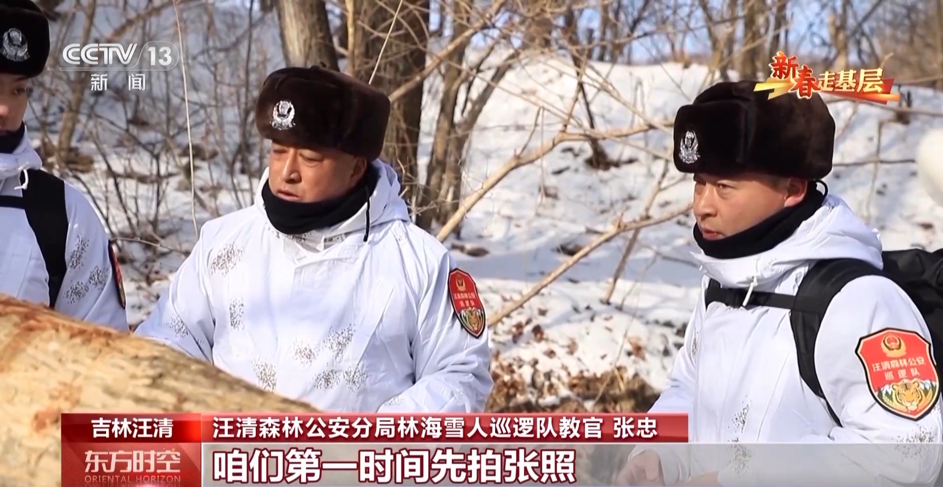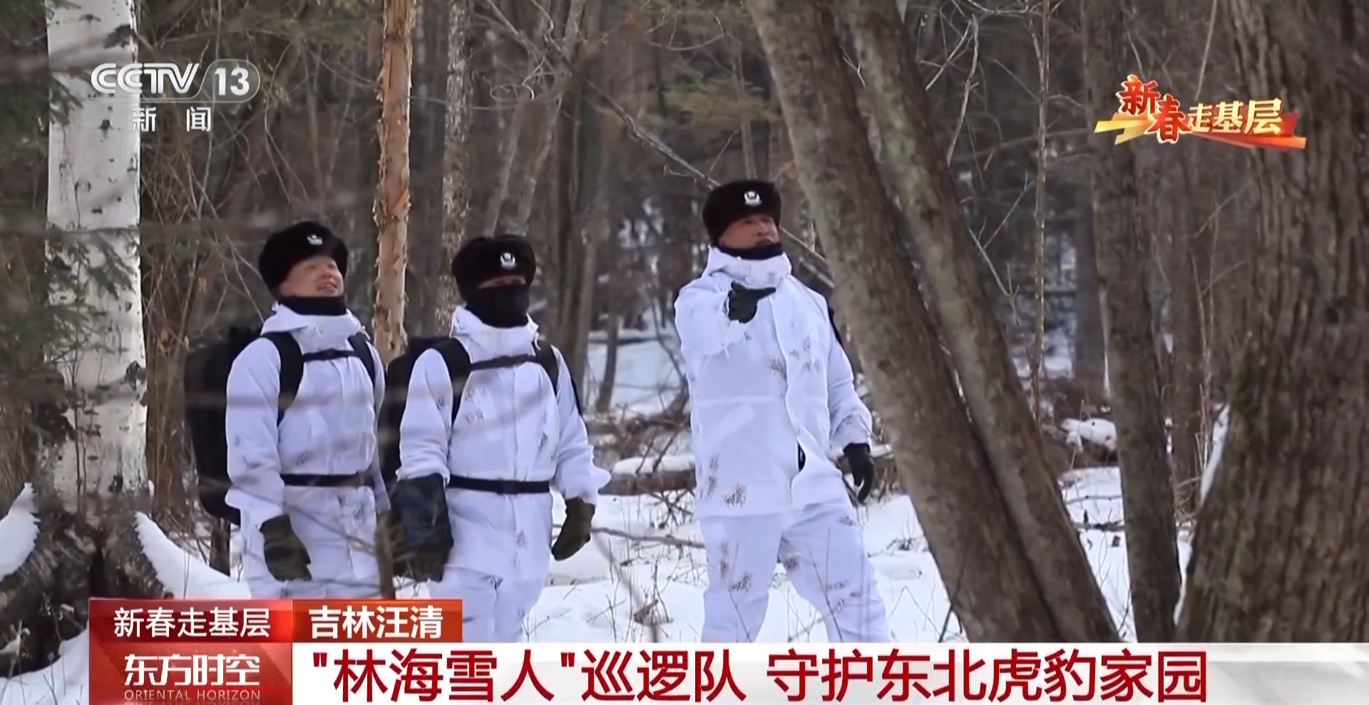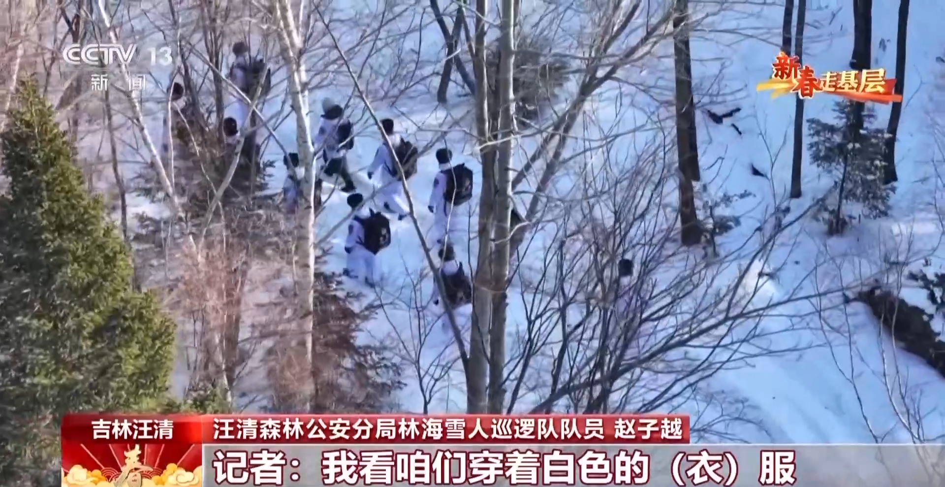 汪清森林公安分局林海雪人巡邏隊隊員 趙子越:這是一個隱蔽服,更好地讓我們在雪地中隱蔽起來。這樣野生動物,比如老虎、豹發(fā)現(xiàn)我們的可能性也會小一些。