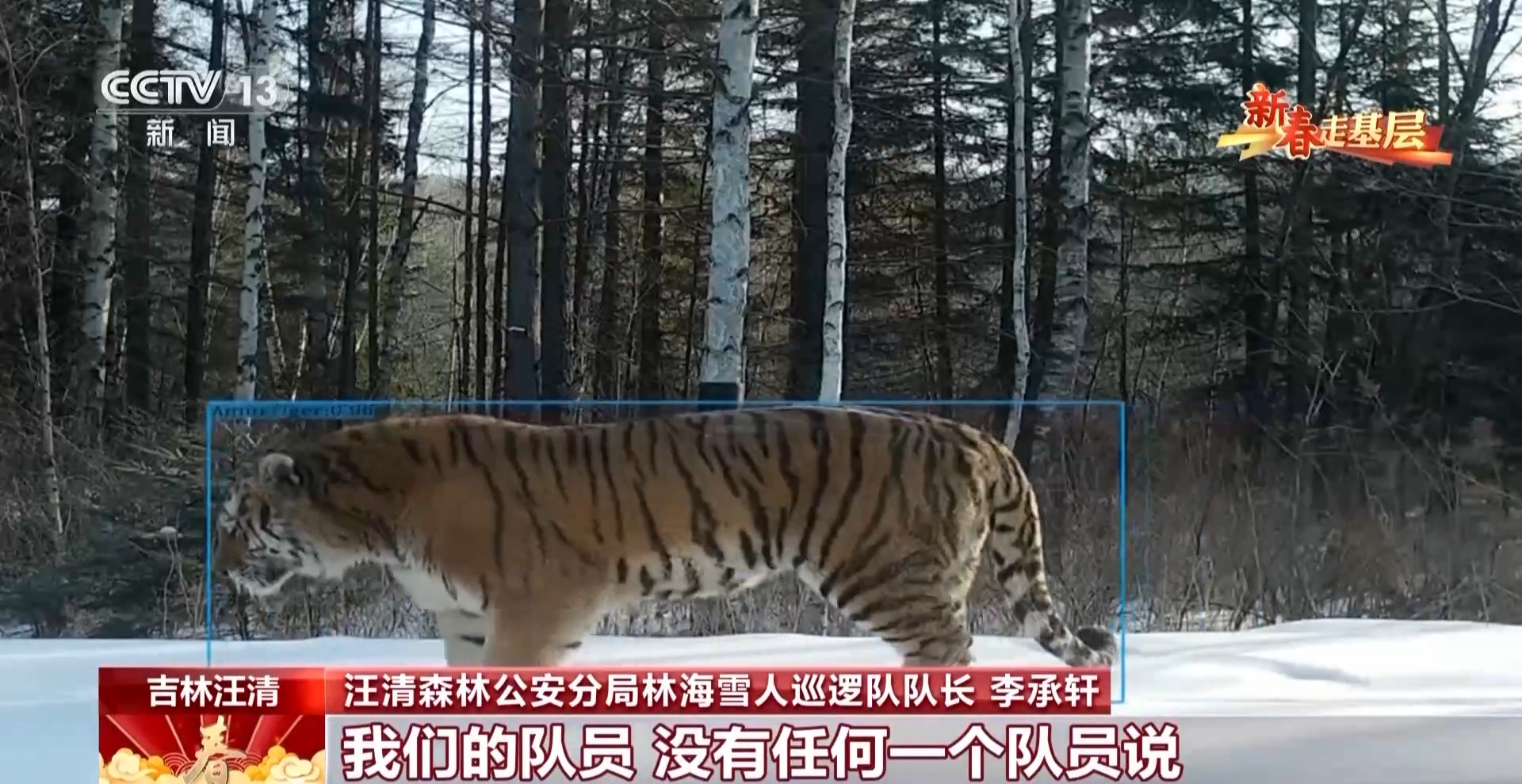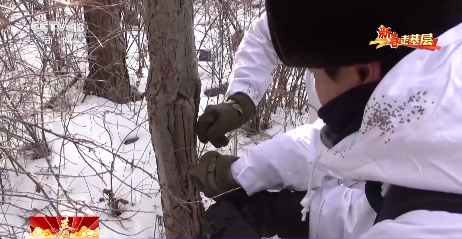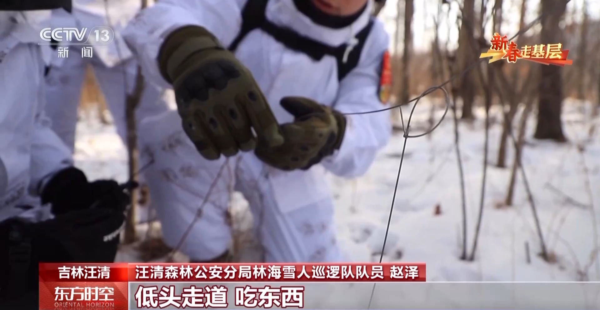 汪清森林公安分局林海雪人巡邏隊隊員 趙子越:這是一個隱蔽服,更好地讓我們在雪地中隱蔽起來。這樣野生動物,比如老虎、豹發(fā)現(xiàn)我們的可能性也會小一些。