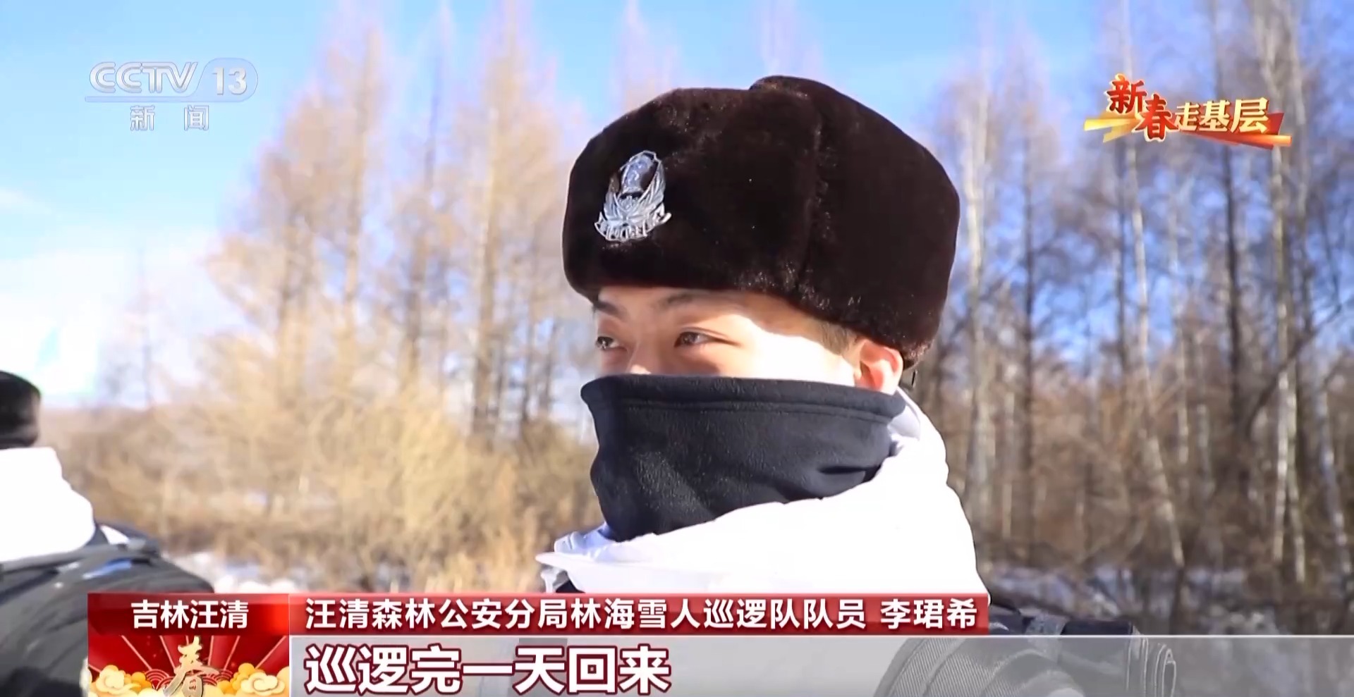 汪清森林公安分局林海雪人巡邏隊隊員 李珺希:走的時候其實感覺不到,巡邏完一天回來,感覺耳朵脹脹熱熱的,回來才發(fā)現(xiàn)凍傷了。