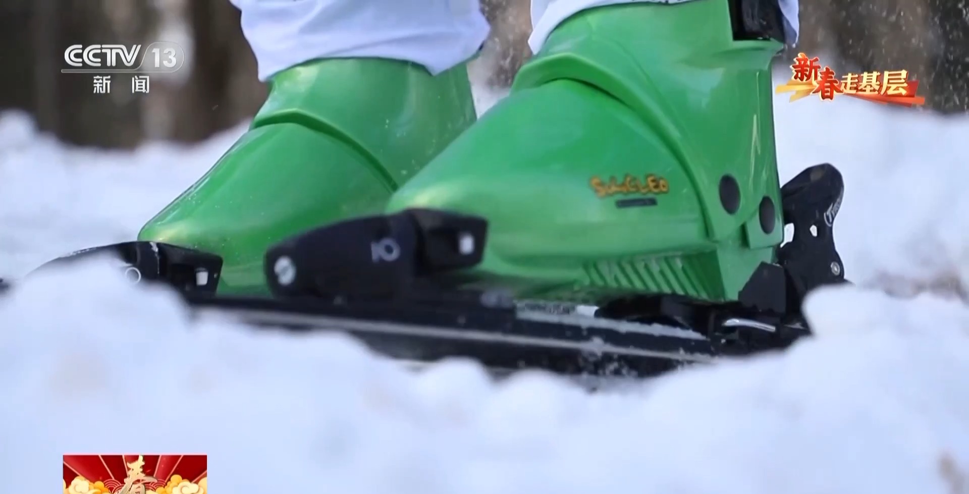 巡邏途中,巡邏隊收到信息,山下一村子附近也發(fā)現(xiàn)東北虎的足跡。為了快速下山,一些隊員迅速換上了滑雪裝備。