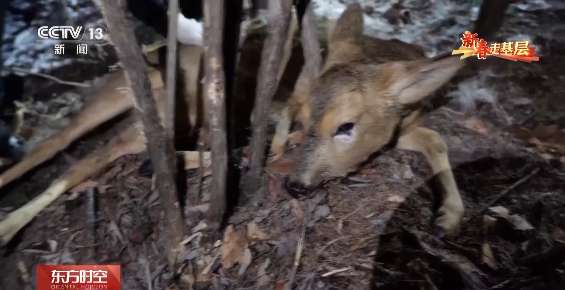 汪清森林公安分局林海雪人巡邏隊隊員 趙澤:狍子在覓食的過程中,低頭走路吃東西,頭一伸進去之后,就往前或者往左右一拽。頭、脖子就被勒住了。
