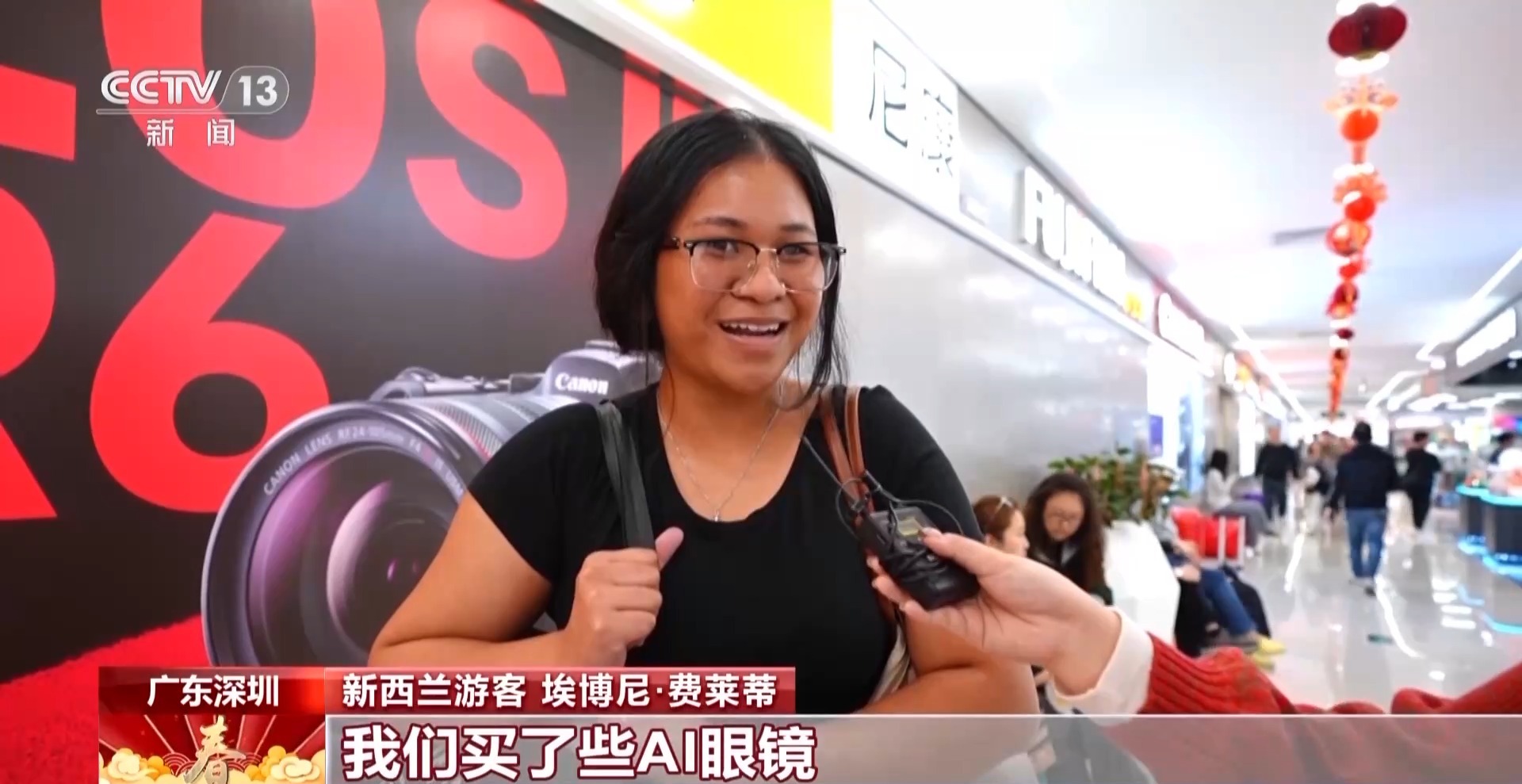 新西蘭游客 埃博尼·費(fèi)萊蒂:我們買了些AI眼鏡,它讓我們?cè)谶@里溝通交流變得更方便,這對(duì)我們是很大的幫助。