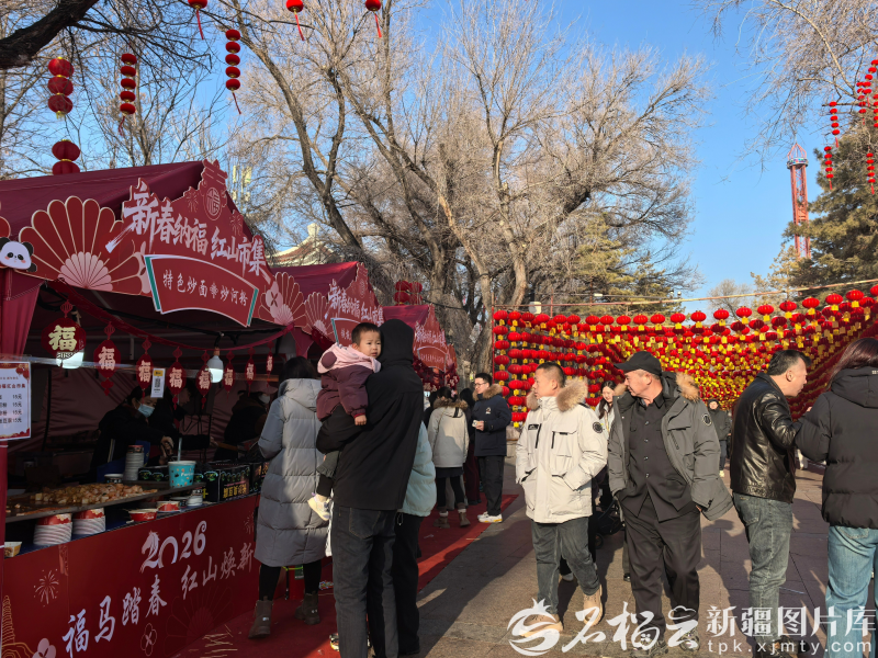 春節(jié)期間,烏魯木齊紅山公園開設(shè)“新春納福紅山市集”。石榴云/新疆日報記者 于江艷攝