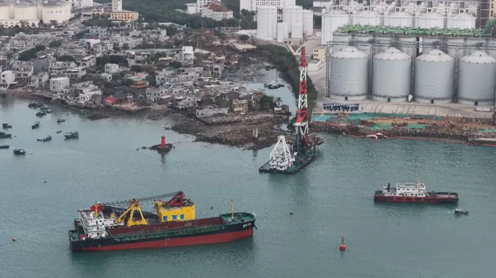 這是國投洋浦港10萬噸級公共糧油碼頭施工現(xiàn)場。(受訪者供圖)