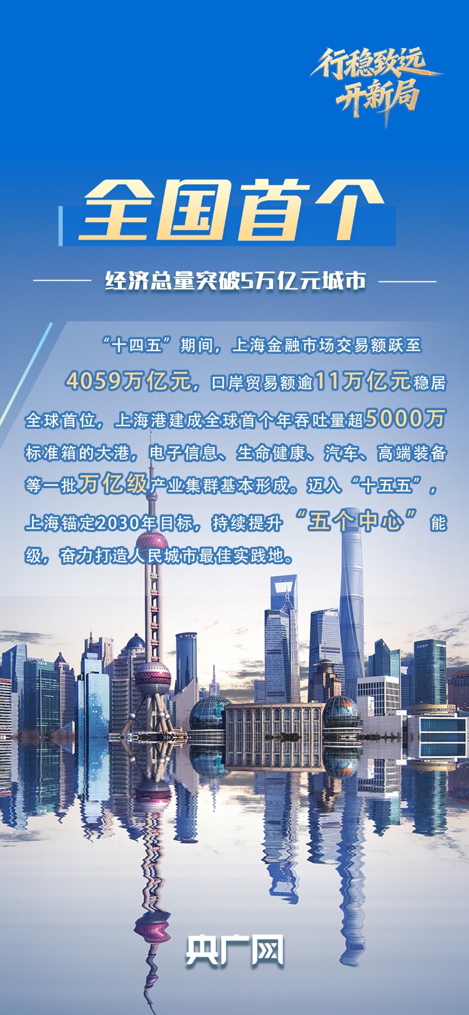 “十四五”期間,上海聚焦建設國際經濟中心、金融中心、貿易中心、航運中心、科技創(chuàng)新中心的重要使命,綜合實力實現(xiàn)新跨越。全市生產總值從4.16萬億元增加到5.67萬億元,成為全國首個經濟總量突破5萬億元的城市,躋身全球城市前五位。成績單背后,既是上?!拔鍌€中心”建設的階段性成效,更是“十五五”期間邁向更高能級的底氣所在。