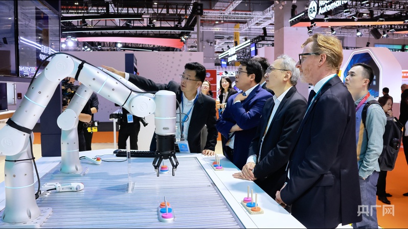 第八屆進博會上,科技企業(yè)展商在向觀眾介紹產品(央廣網記者 何智康 攝)