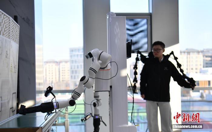 1月8日,河北雄安新區(qū)中國雄安集團數(shù)字城市科技有限公司具身智能訓練場內(nèi),機器人在進行物流裝配應用場景訓練。 中新社記者 韓冰 攝