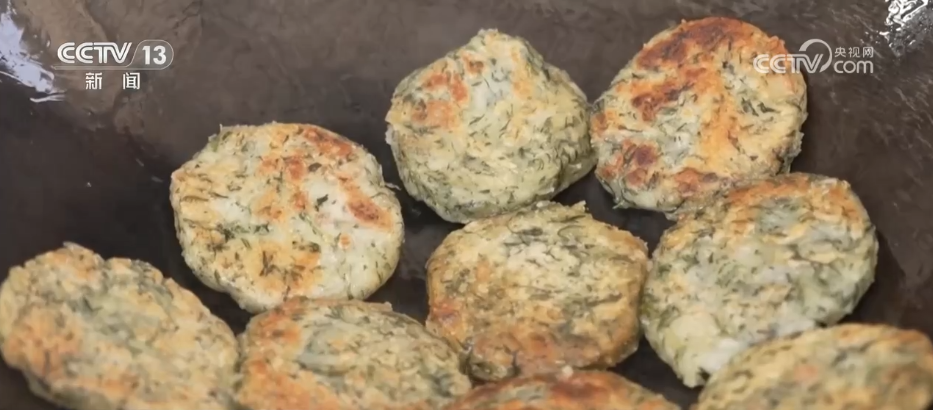 做蒿子粑,選料是第一步。早上新鮮采摘的蒿子清香撲鼻,清洗后焯一下水就能去除它的苦澀味。熬煮好的臘肉蒿子湯倒入糯米和秈米混合的米粉中,揉搓成小團(tuán)再壓扁。起鍋燒油煎至雙面酥黃,蒿子粑就做好了。在桐城市,蒿子粑還走進(jìn)工廠,進(jìn)行規(guī)模化生產(chǎn),通過(guò)直播進(jìn)行線上銷(xiāo)售,深受消費(fèi)者喜愛(ài)。