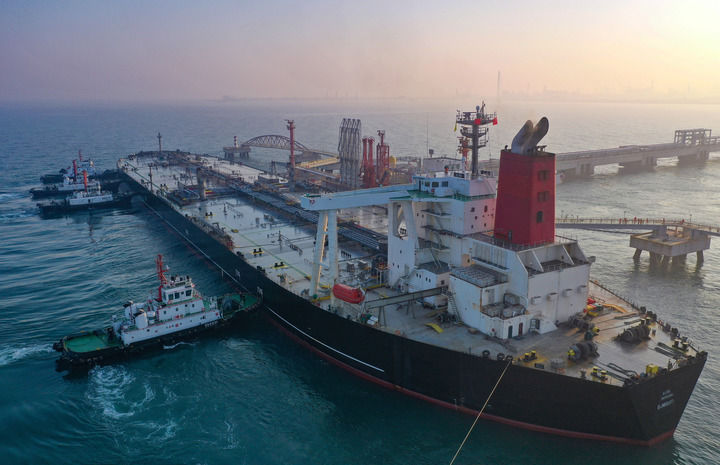2025年12月18日,一艘裝載著17.9萬(wàn)噸石化原輔料的船舶泊入國(guó)投洋浦油儲(chǔ)碼頭30萬(wàn)噸級(jí)原油泊位(無(wú)人機(jī)照片)。這是海南自由貿(mào)易港正式啟動(dòng)全島封關(guān)后洋浦港口岸第一批通關(guān)的“零關(guān)稅”石化原輔料。