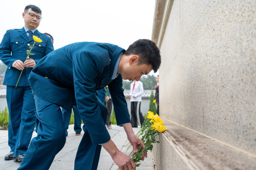 陵園內(nèi)松柏蒼翠,豐碑矗立,全體人員懷著崇敬之心,仔細擦拭每一塊烈士墓碑,用毛筆蘸取油漆,為風化褪色的碑文描紅,對陵園內(nèi)的落葉雜物進行清掃,讓烈士英名在春日暖陽下煥發(fā)光彩。隨后,全體人員在革命烈士紀念碑前肅立默哀,向英勇獻身的烈士致以深切哀悼,并依次向烈士敬獻鮮花,以樸素而莊重的形式告慰英靈。