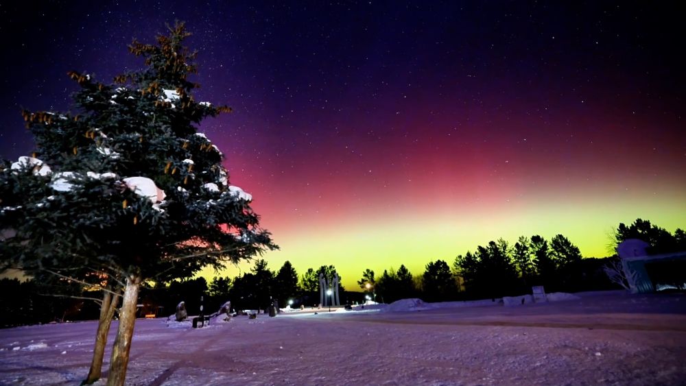近日,在素有“極光之城”之稱的黑龍江省大興安嶺地區(qū)漠河市,出現(xiàn)了紅綠極光美景,吸引大批游客踏雪追光。