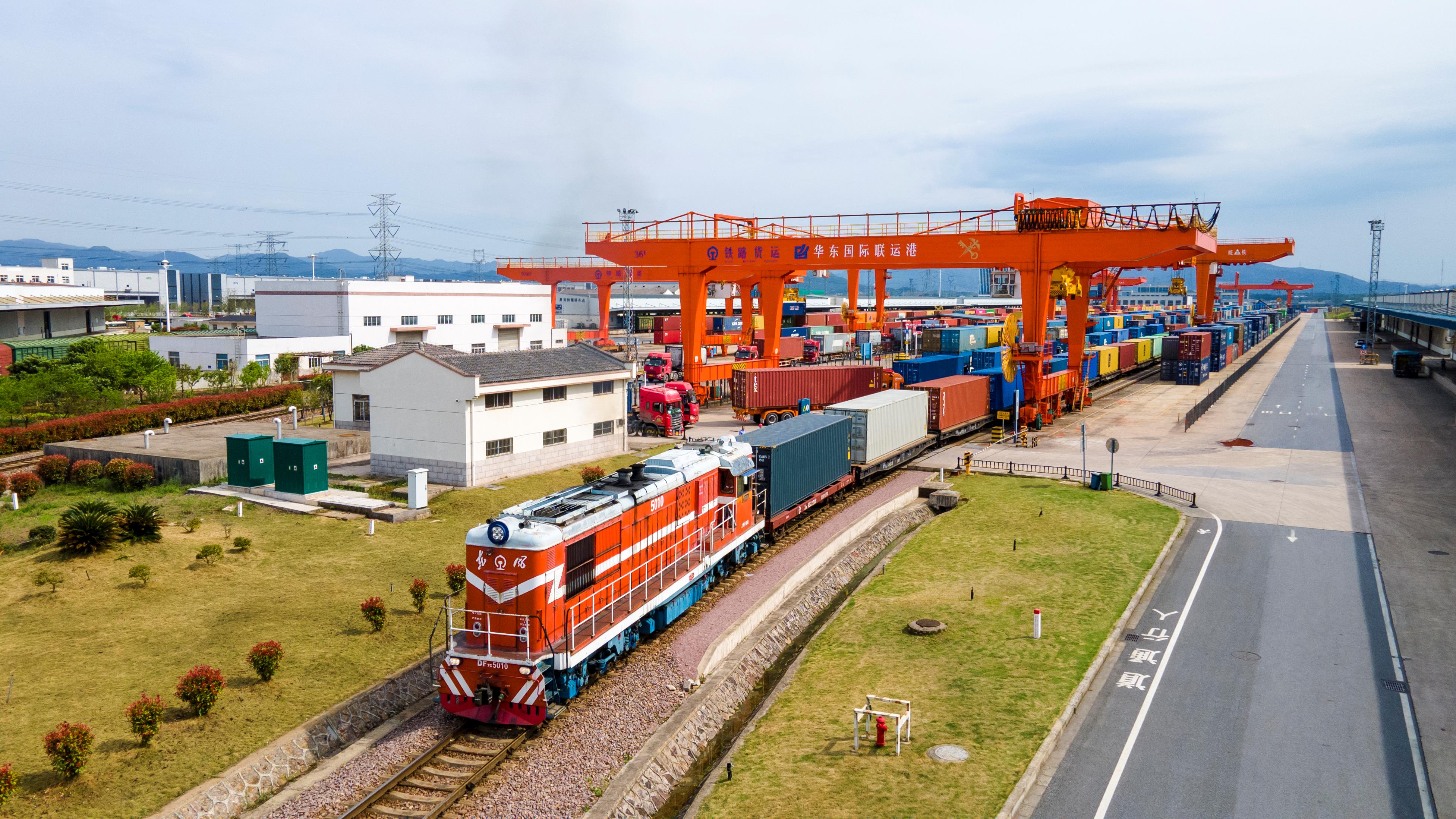 △2024年4月1日,浙江省金華華東國際聯(lián)運港,一列中歐班列裝載110個標箱日用百貨、電動工具、機械裝備等貨物從鐵路金華南貨場啟程駛往匈牙利布達佩斯。