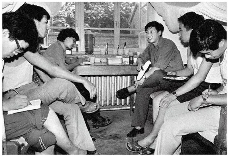 1984年7月29日,習(xí)近平與中國(guó)人民大學(xué)暑期社會(huì)實(shí)踐團(tuán)成員在正定縣政府招待所宿舍座談。