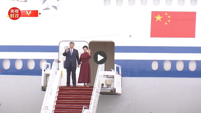 習近平主席夫人彭麗媛,中共中央政治局常委、中央辦公廳主任蔡奇,中共中央政治局委員、外交部部長王毅等陪同人員同機抵達。