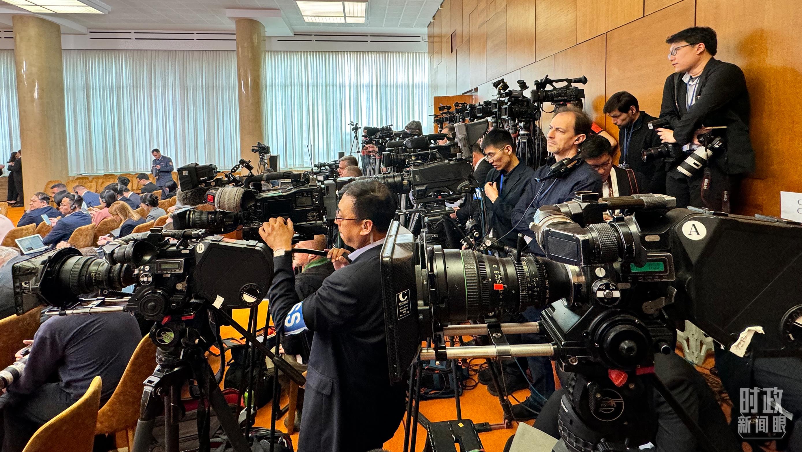 這是中塞兩國元首共見記者開始前的現(xiàn)場(chǎng),記者云集。(總臺(tái)央視記者李增仁拍攝)