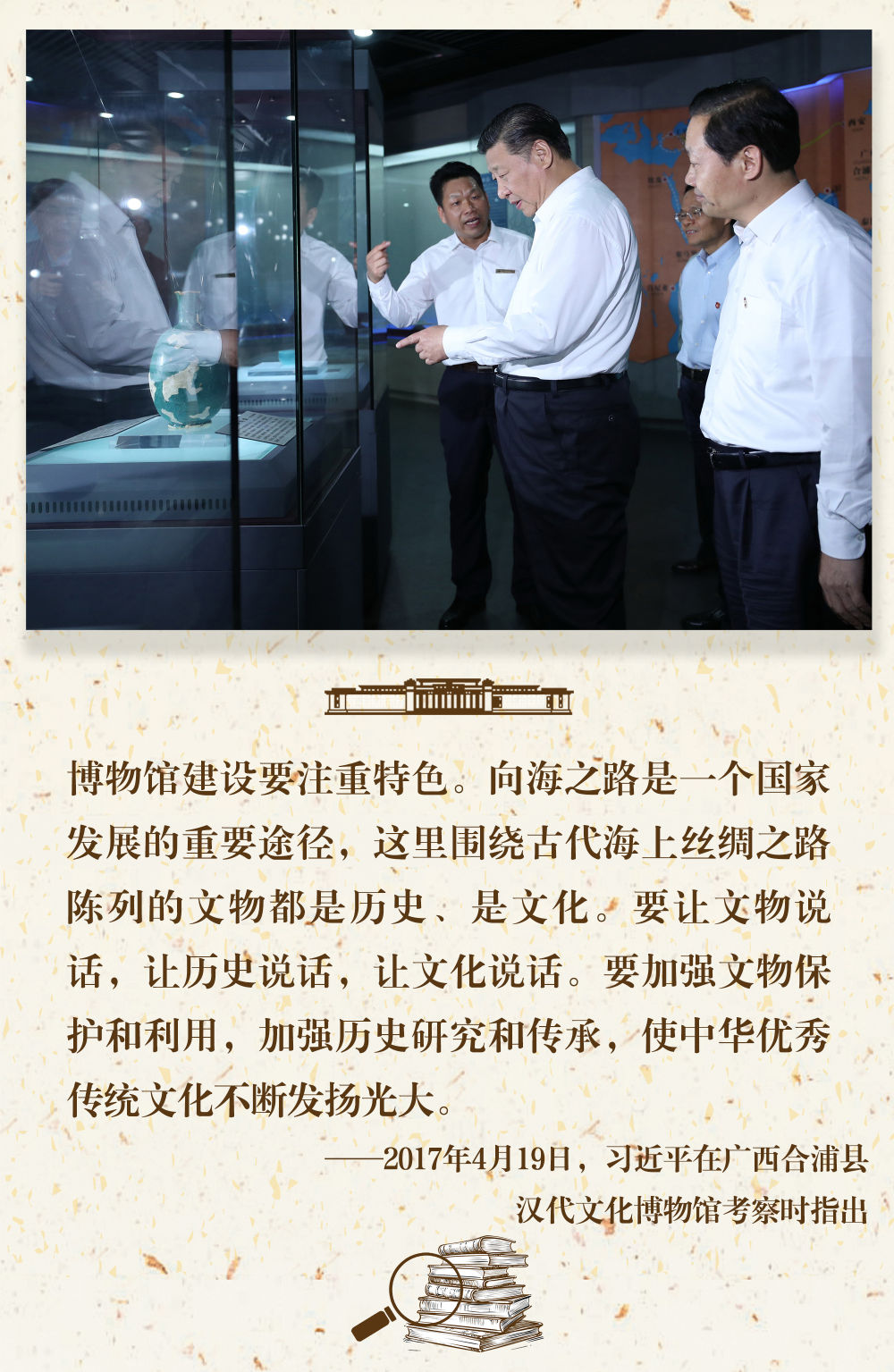 “一個(gè)博物館就是一所大學(xué)?!?。長(zhǎng)期以來(lái),習(xí)近平總書(shū)記十分關(guān)心博物館事業(yè)發(fā)展,多次在不同場(chǎng)合對(duì)發(fā)揮好博物館相關(guān)功能提出要求。