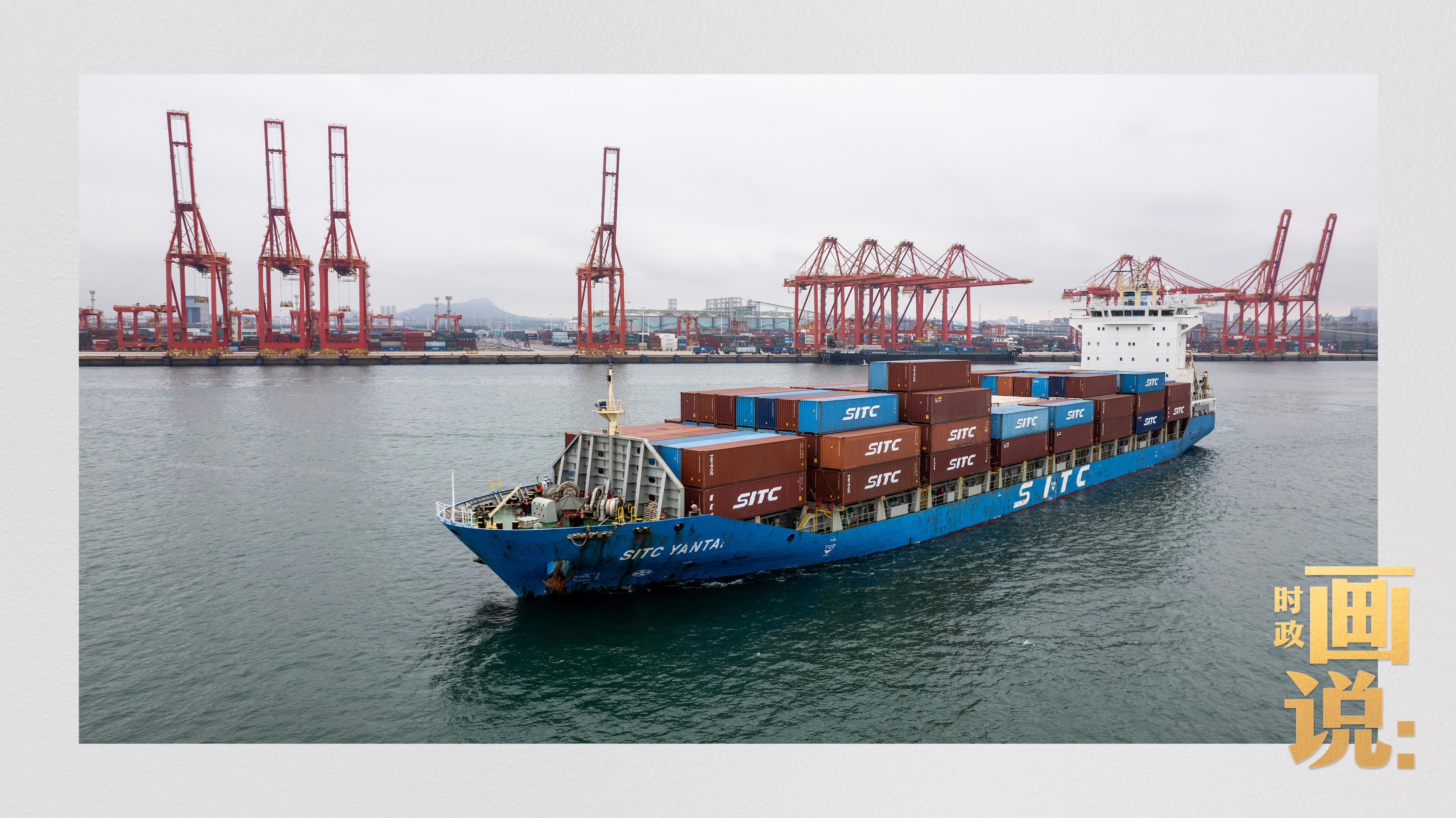 △一艘滿載的貨船正在駛離日照港石臼港區(qū),奔向遠(yuǎn)海。