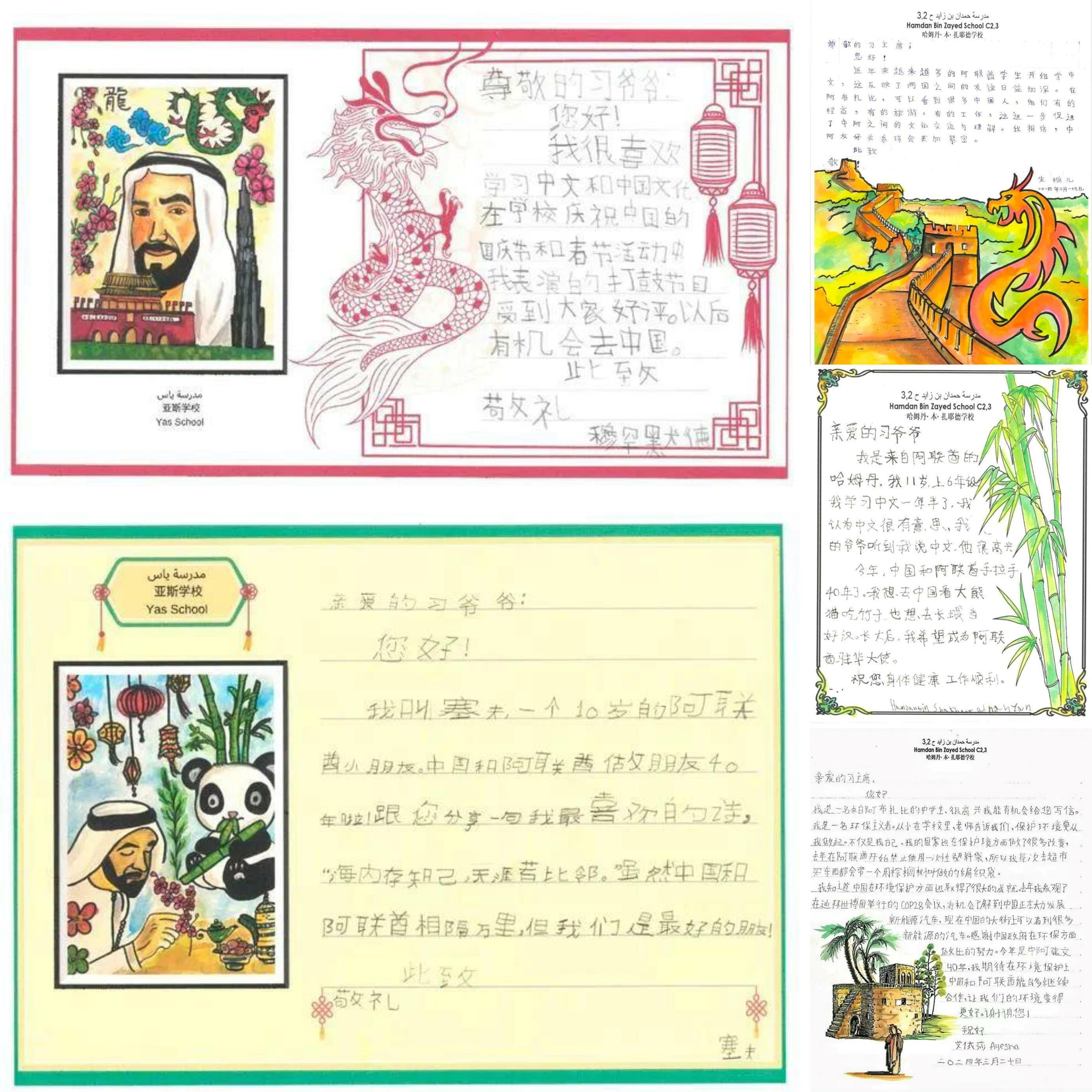 “我讀了你們每個(gè)人的信,從字里行間、畫里畫外感受到了大家對(duì)中國(guó)文化的熱愛,對(duì)兩國(guó)友好的期盼?!苯眨?xí)近平主席在給他們的復(fù)信中說,“5年前,我同穆罕默德總統(tǒng)共同啟動(dòng)阿聯(lián)酋中文教學(xué)‘百校項(xiàng)目’,如今看到‘學(xué)中文’在阿聯(lián)酋已經(jīng)成為一種新風(fēng)尚,培養(yǎng)了一批像你們這樣的中阿交流小使者,我很欣慰。”