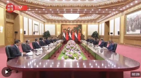 5月29日下午,國(guó)家主席習(xí)近平在北京人民大會(huì)堂同來(lái)華出席中國(guó)—阿拉伯國(guó)家合作論壇第十屆部長(zhǎng)級(jí)會(huì)議開(kāi)幕式并進(jìn)行國(guó)事訪問(wèn)的埃及總統(tǒng)塞西舉行會(huì)談。