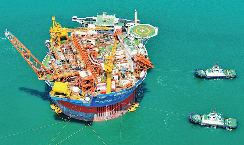 “??惶枴?,是亞洲首艘圓筒型浮式生產(chǎn)儲卸油裝置。該裝置集原油生產(chǎn)、存儲、外輸?shù)裙δ苡谝惑w,被網(wǎng)友們昵稱為“超級能源碗”,也是完全由我國自主設(shè)計建造的海上油氣加工廠。圖為2024年5月12日,“??惶枴睆闹袊S颓鄭u國際化高端裝備制造基地離港啟運。 人民圖片 張進剛/攝
