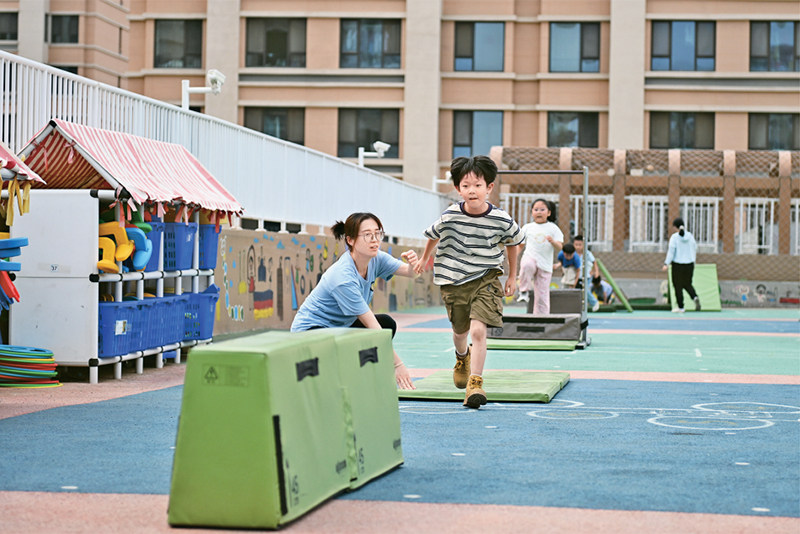 近年來,河北雄安新區(qū)通過創(chuàng)新教育發(fā)展體制機制、高標準配建教育設(shè)施、引入專業(yè)教師隊伍、引進優(yōu)質(zhì)教育資源等方式,不斷推動教育高質(zhì)量發(fā)展。圖為2024年5月23日,當?shù)赜變簣@的孩子們在室外活動。 新華社記者 牟宇/攝
