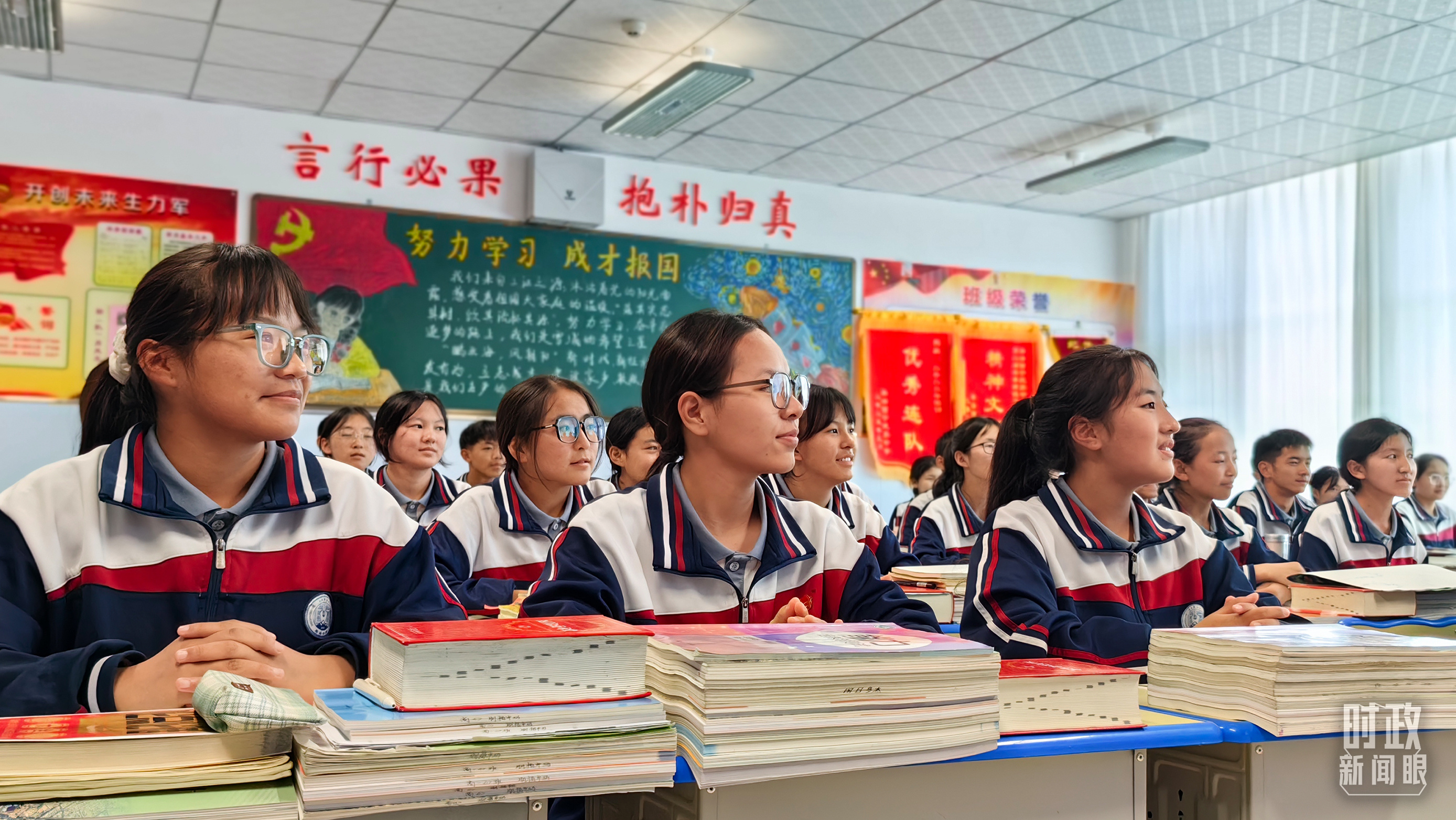 果洛西寧民族中學(xué)高一(1)班的“新時(shí)代、新家鄉(xiāng)”主題思政課。(總臺央視記者許永松、國廣記者李晉拍攝)
