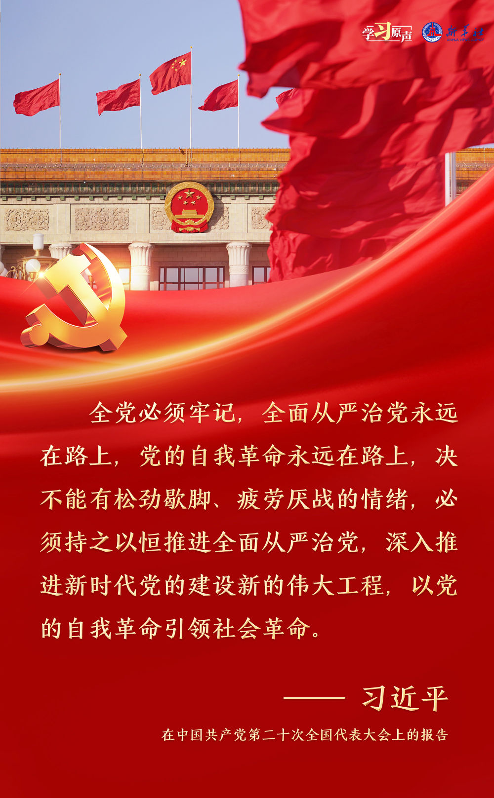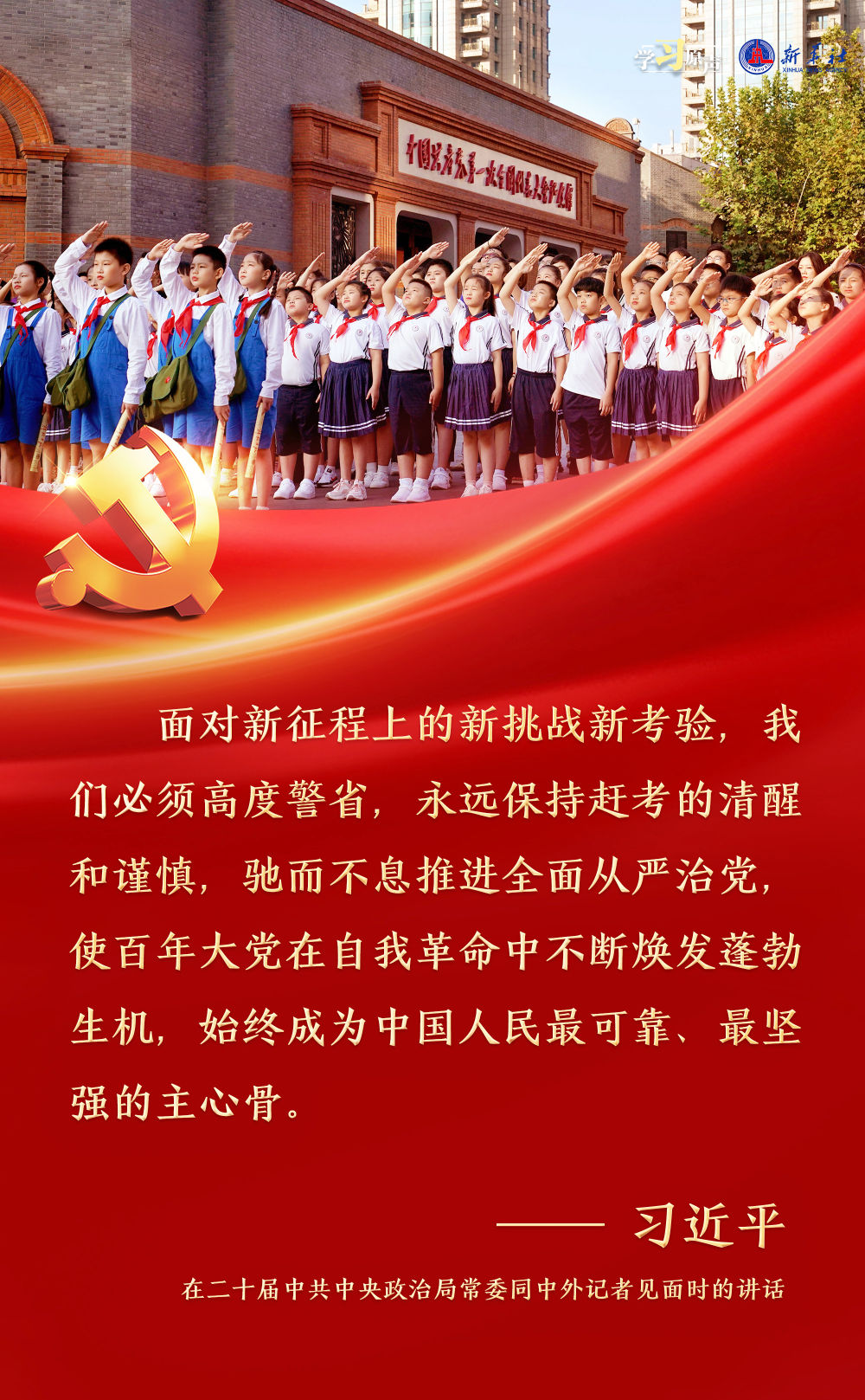 習(xí)近平總書記強(qiáng)調(diào),面對新征程上的新挑戰(zhàn)新考驗,我們必須高度警省,永遠(yuǎn)保持趕考的清醒和謹(jǐn)慎,馳而不息推進(jìn)全面從嚴(yán)治黨,使百年大黨在自我革命中不斷煥發(fā)蓬勃生機(jī),始終成為中國人民最可靠、最堅強(qiáng)的主心骨。