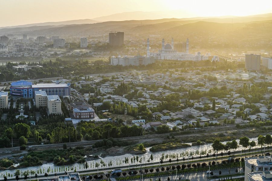 這是2024年6月26日拍攝的塔吉克斯坦首都杜尚別城市風(fēng)光。新華社記者 曹陽(yáng) 攝