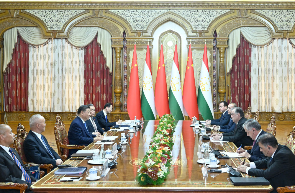 兩國元首共同簽署《中華人民共和國和塔吉克斯坦共和國關于發(fā)展新時代全面戰(zhàn)略合作伙伴關系的聯合聲明》,并共同見證交換經貿、投資、互聯互通、關鍵礦產、安全、人文等領域數十項雙邊合作文件。