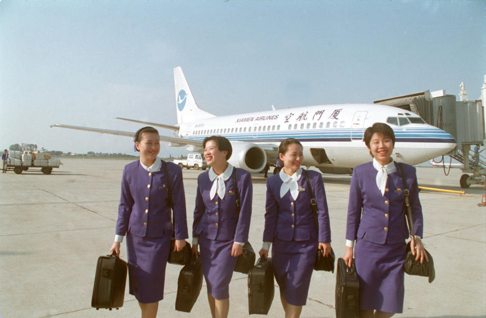 這是飛行歸來的廈航乘務(wù)員(1997年4月23日攝)。新華社記者 張國(guó)俊 攝
