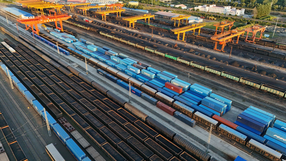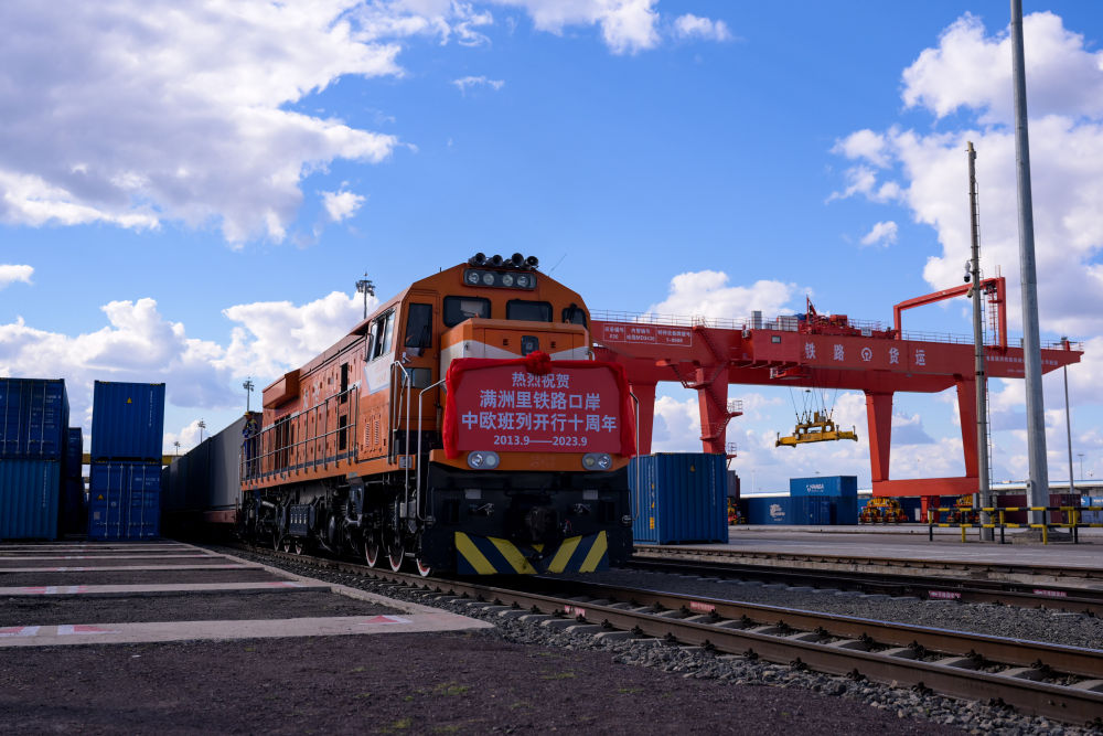 2023年9月20日,一列中歐班列行駛在內(nèi)蒙古滿洲里站貨運(yùn)車間集裝箱場(chǎng)。作為我國(guó)向北開放的“橋頭堡”、中歐班列“東通道”的重要口岸,滿洲里鐵路口岸不斷加大中歐班列通道能力建設(shè),進(jìn)一步提升運(yùn)輸效率和品質(zhì)。