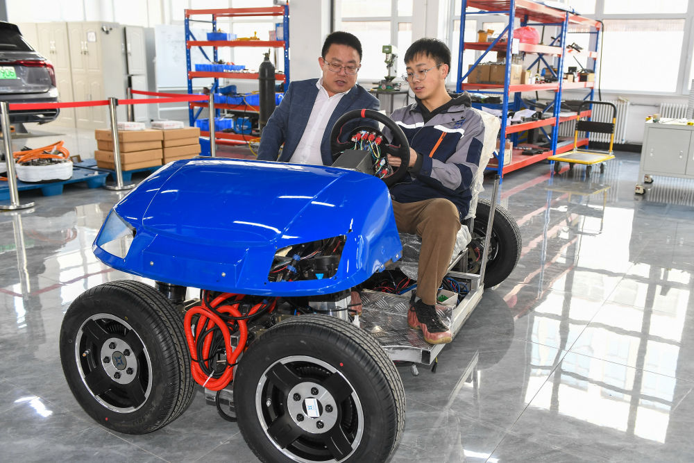 2024年3月13日,在吉林長(zhǎng)春一家汽車(chē)科技企業(yè),吉林大學(xué)汽車(chē)工程學(xué)院教授靳立強(qiáng)(左)試乘智能底盤(pán)樣車(chē)。2023年,長(zhǎng)春市科技局和吉林大學(xué)共建吉林大學(xué)概念驗(yàn)證中心,一手對(duì)接高校,一手對(duì)接企業(yè),確保科研成果在技術(shù)路線(xiàn)和商業(yè)模式上的可行性,實(shí)現(xiàn)“從0到1”的轉(zhuǎn)化。