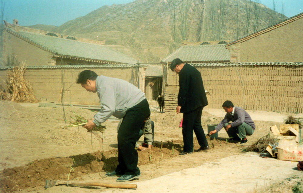 1997年4月,林占熺(左一)帶領(lǐng)科研團(tuán)隊(duì)首次在寧夏彭陽(yáng)縣試種菌草。新華社發(fā)
