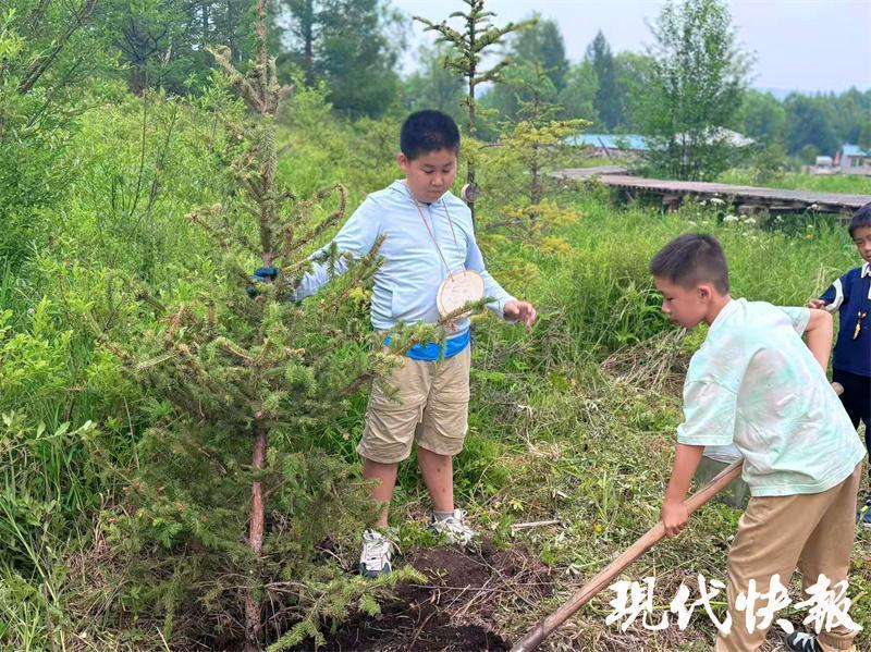 這樣的美麗風(fēng)景讓第一次來到大草原的周云昊很興奮?!拔覀儚漠?dāng)?shù)亓私獾?,這是一代又一代人努力的結(jié)果,讓我們也深切感受到生態(tài)保護的重要性?!毖袑W(xué)途中,周云昊和小伙伴們還專門在當(dāng)?shù)亓謭龇N下一棵樹?!跋M芙】甸L大,成為守護綠色草原的小衛(wèi)士。”