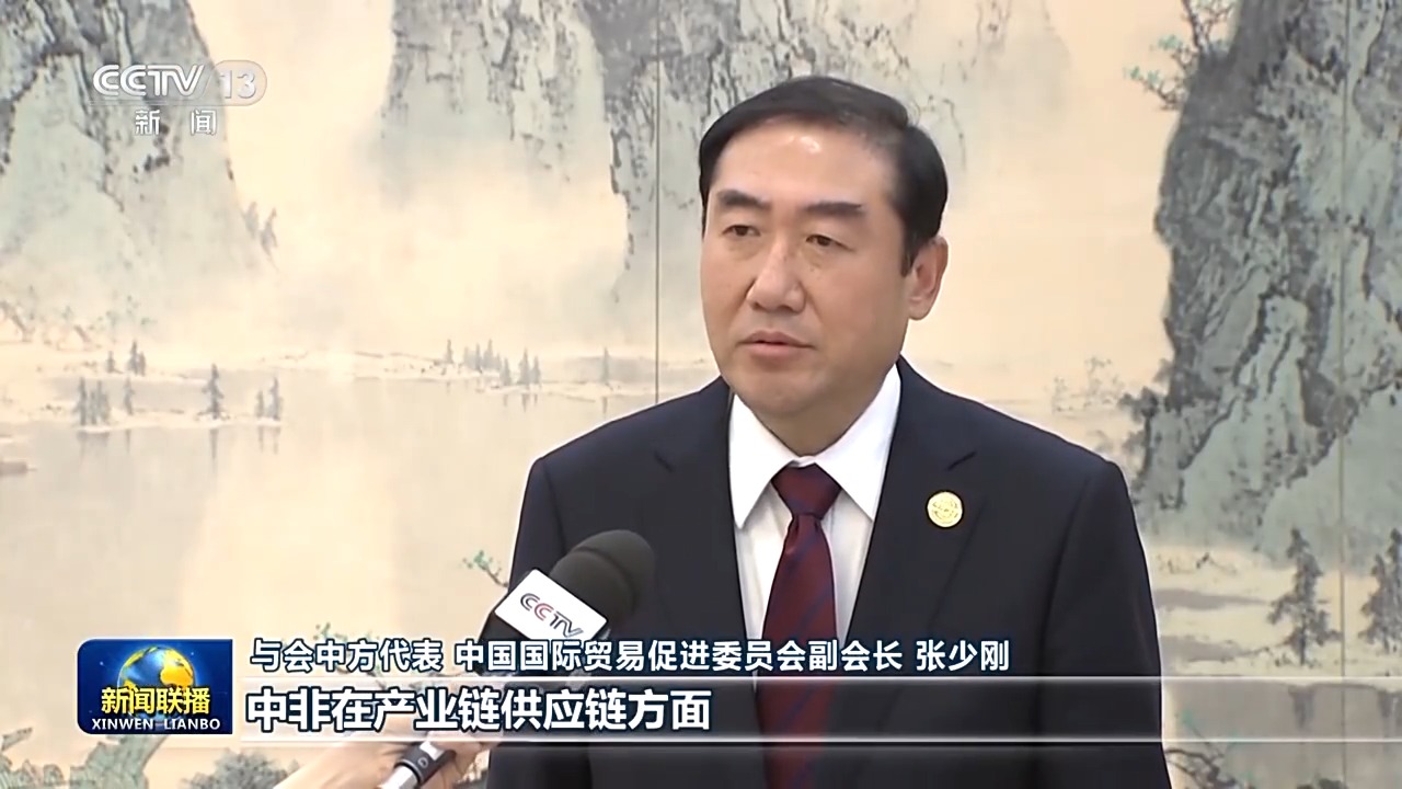 與會(huì)中方代表、中國(guó)國(guó)際貿(mào)易促進(jìn)委員會(huì)副會(huì)長(zhǎng) 張少剛:中非在產(chǎn)業(yè)鏈供應(yīng)鏈方面具有極強(qiáng)互補(bǔ)性。中國(guó)貿(mào)促會(huì)將用好中國(guó)國(guó)際供應(yīng)鏈促進(jìn)博覽會(huì)等合作平臺(tái),促進(jìn)中非經(jīng)貿(mào)合作高質(zhì)量發(fā)展,推動(dòng)中國(guó)大市場(chǎng)成為非洲大機(jī)遇。
