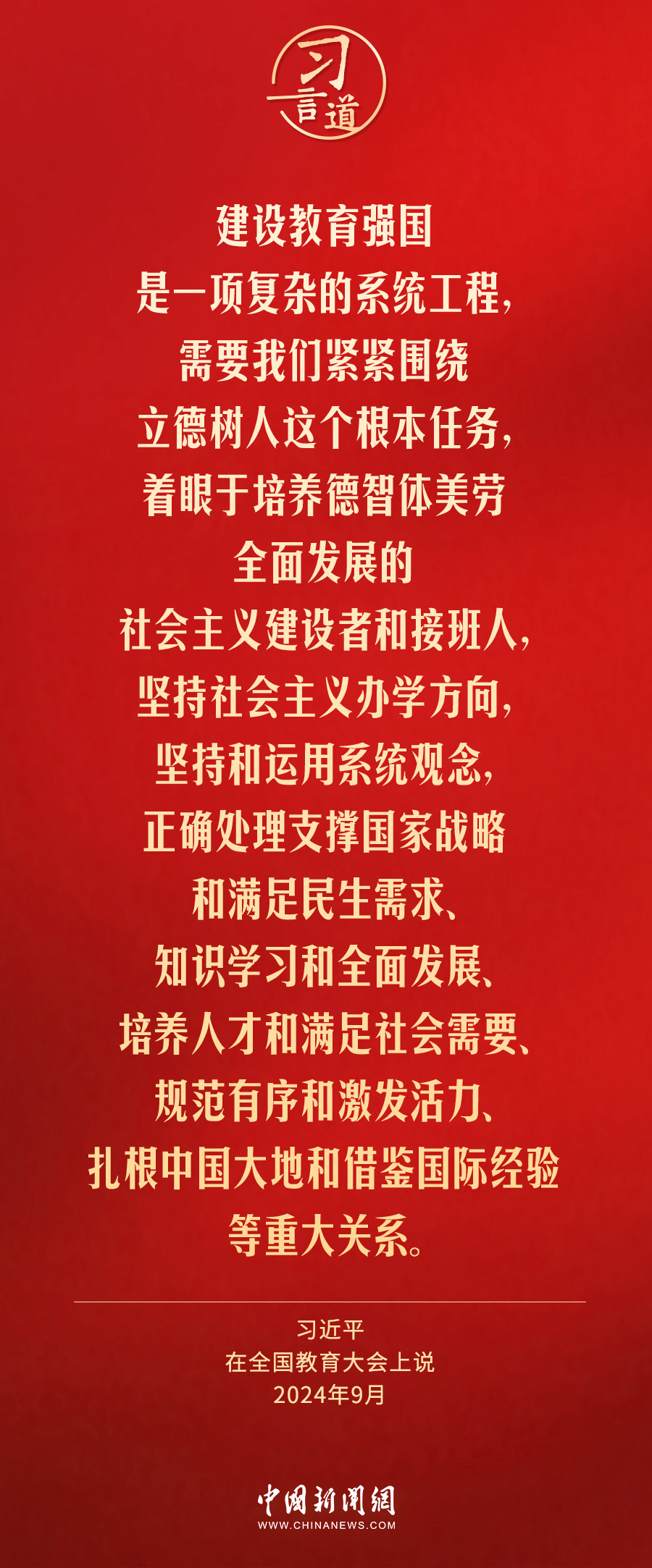 全國教育大會(huì)9日至10日在北京召開。中共中央總書記、國家主席、中央軍委主席習(xí)近平出席大會(huì)并發(fā)表重要講話。習(xí)近平指出——